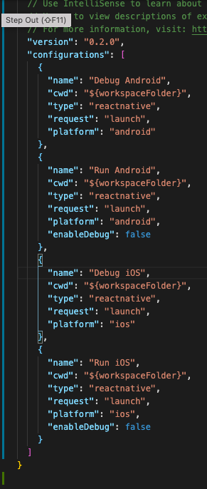 설정을 완료하면 프로젝트 루트의 .vscode/.react/launch.json 파일이 생성되는데,